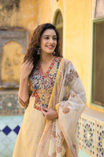 The Zeenat Heritage Kurta Set is a graceful tribute to timeless Indian craftsmanship, blending Mughal-inspired artistry with modern refinement. Crafted in an elegant beige tone, this ensemble features intricate multicolour embroidery along the neckline and sleeves — showcasing delicate threadwork reminiscent of classic miniature motifs.