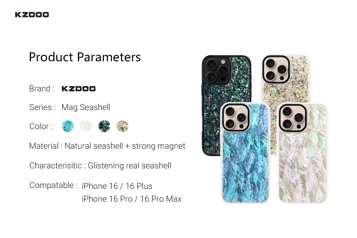 Bring a little piece of the ocean wherever you go. The Mag Seashell Case blends real mother-of-pearl seashell elements with modern magnetic tech to give your phone a look thatβs naturally stunning and effortlessly premium.