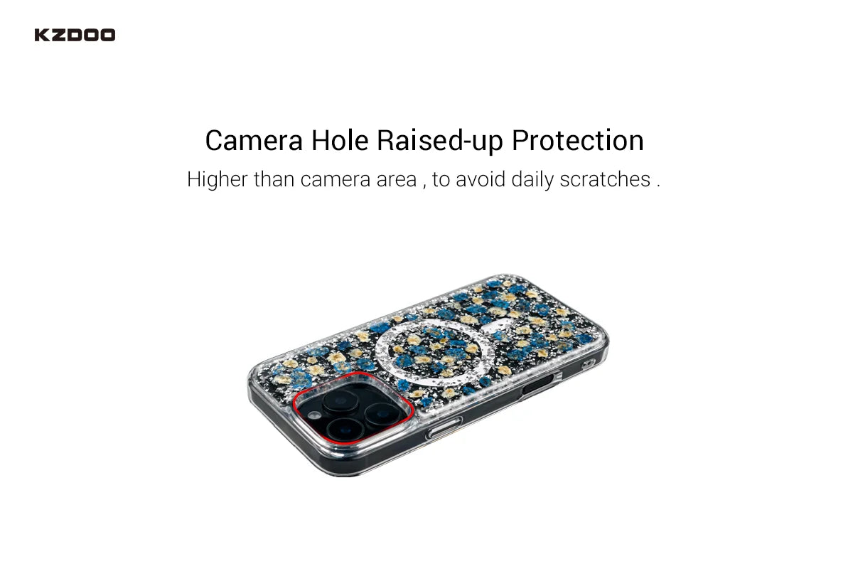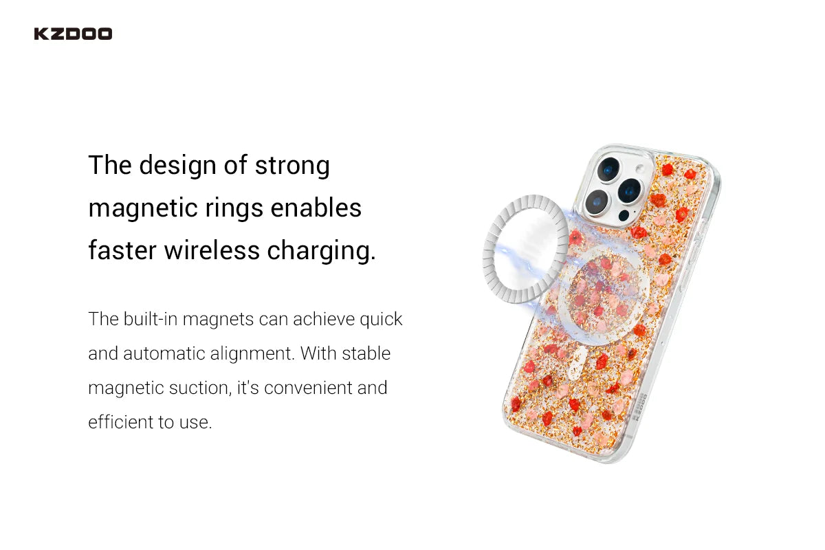 Features a lively, sparkle-filled pattern with flower-like elements that shift beautifully with movement, giving your phone a festive, eye-catching look.
