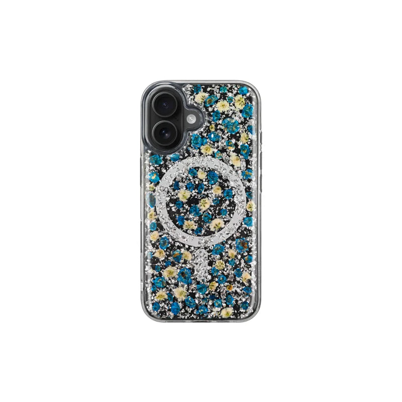 Bring sparkle and charm to your everyday carry with the Small Mag Flower Case for iPhone 16. Designed for anyone who loves a mix of fun aesthetics and functional tech, this case blends glittery floral accents with full MagSafe compatibility — so you never have to choose between pretty and practical.