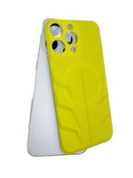 • Crafted from solid metal, this case features a sleek, modern design finished in matte neon yellow, giving it a bold, high-impact look.