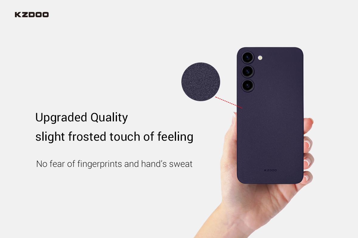 Smooth, velvety matte coating that enhances grip while resisting fingerprints, smudges, and everyday wear.