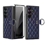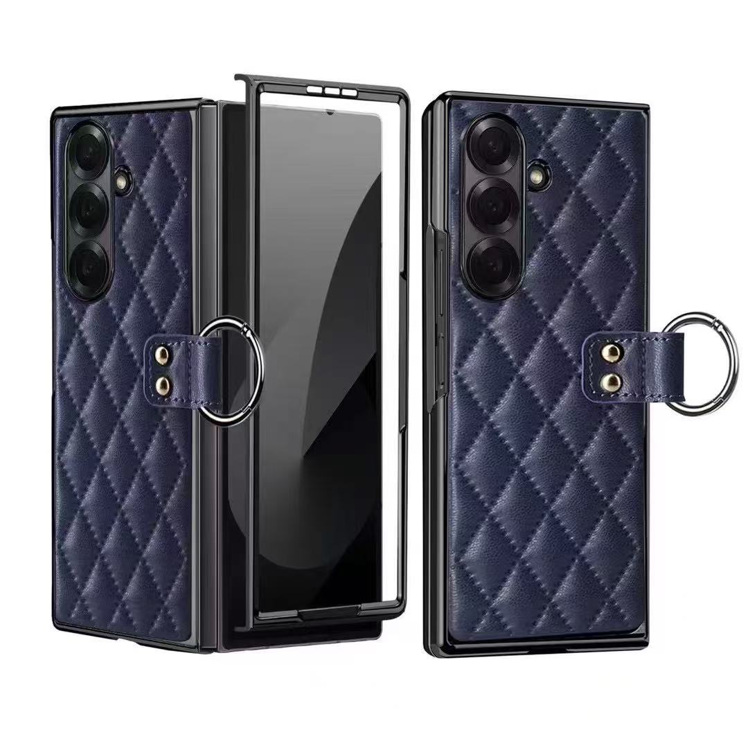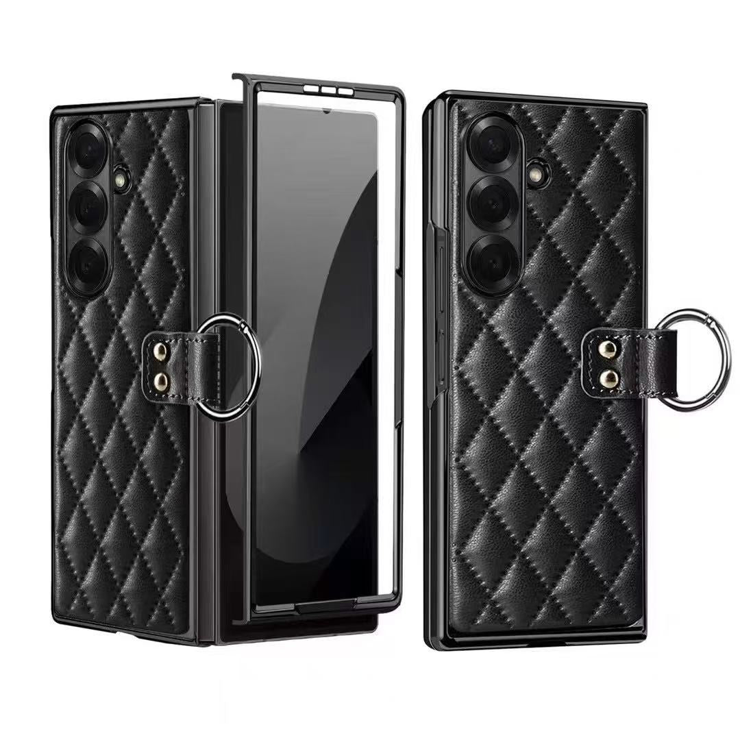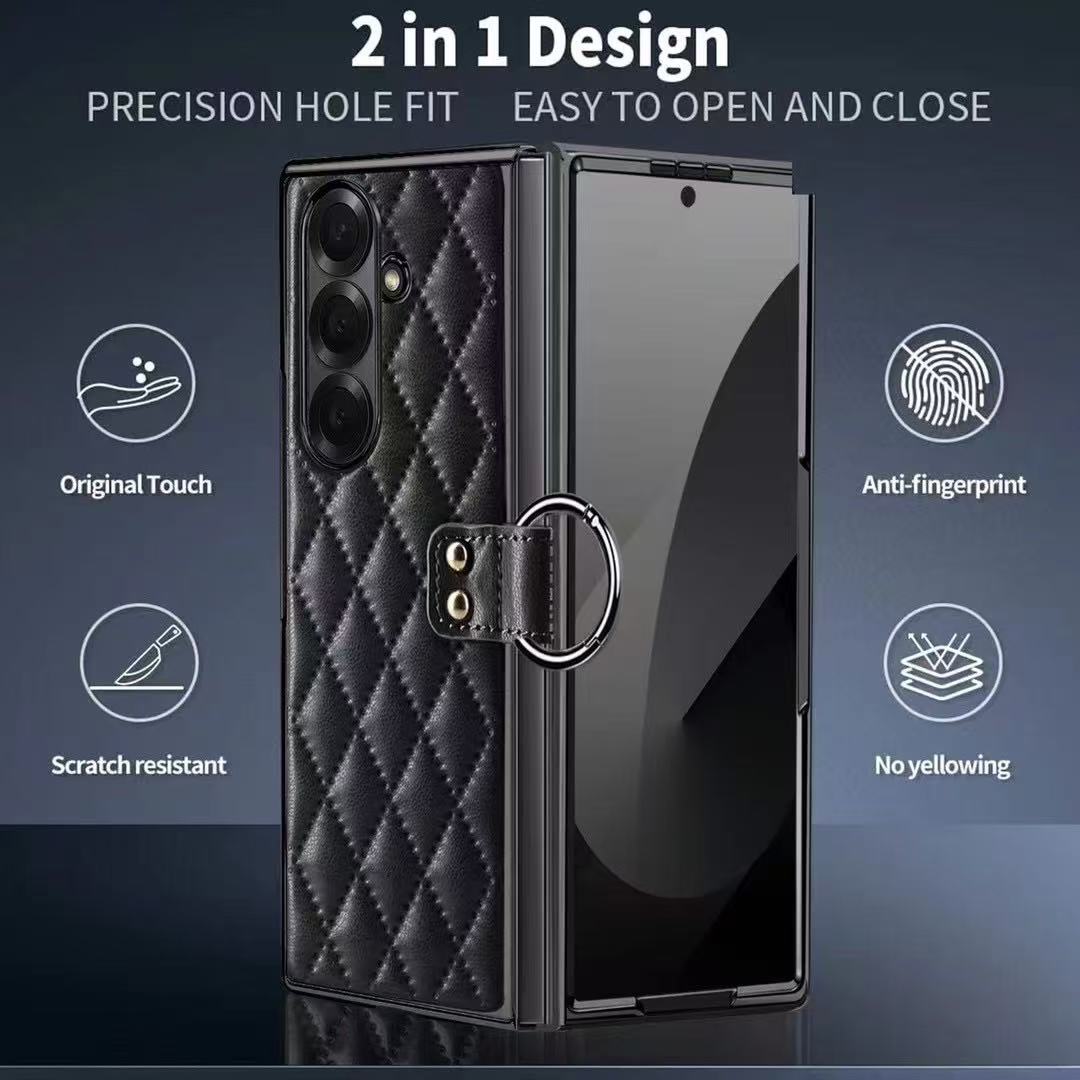 Samsung Galaxy Z Fold 7 – Luxury Quilted Leather Case with Metal Frame & Ring Holder