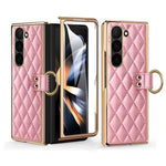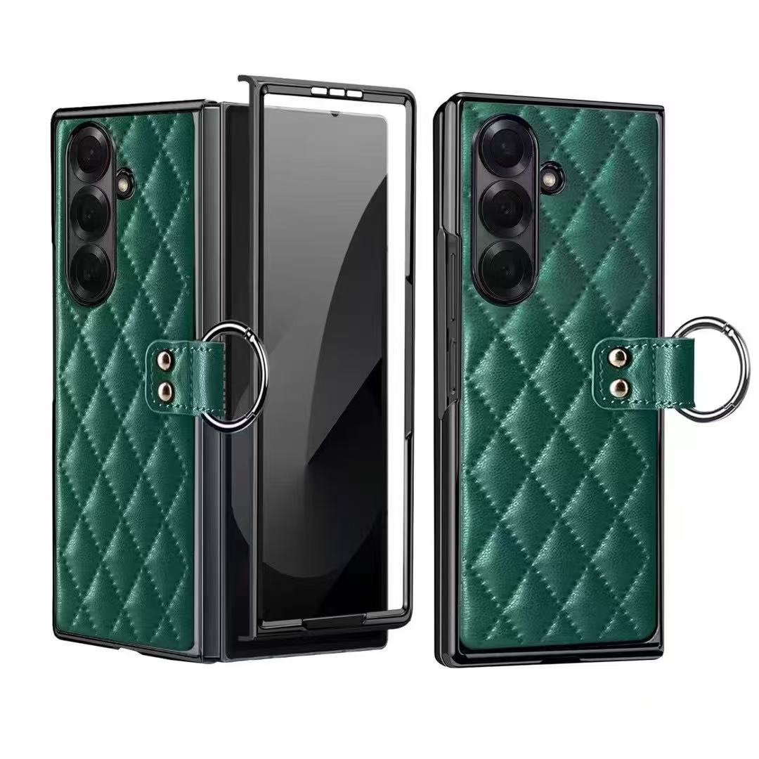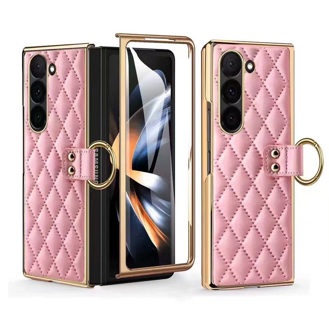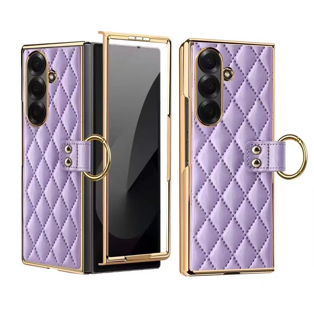 Samsung Galaxy Z Fold 7 – Luxury Quilted Leather Case with Metal Frame & Ring Holder