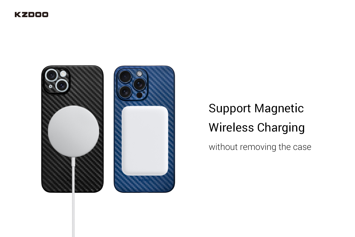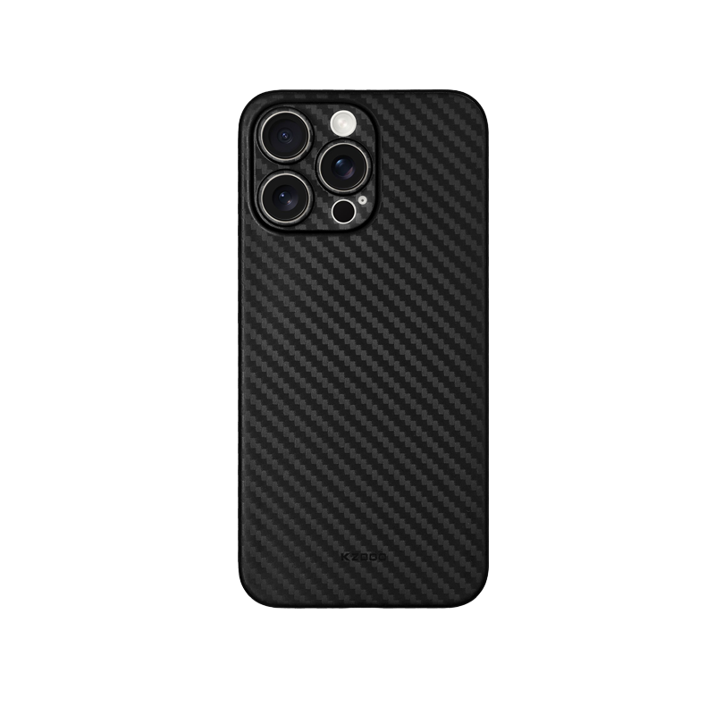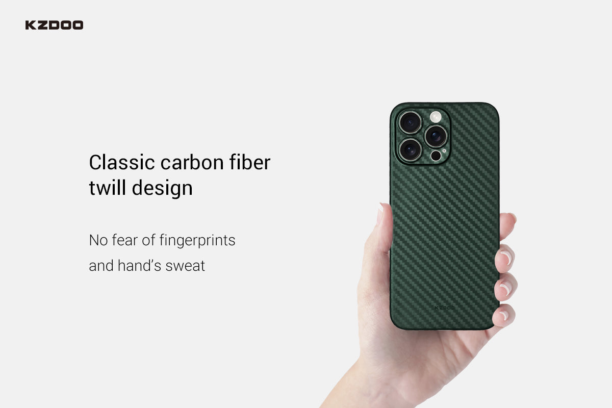 • The case has a carbon fiber pattern with a subtle diagonal weave, giving it a tech-savvy, premium look.