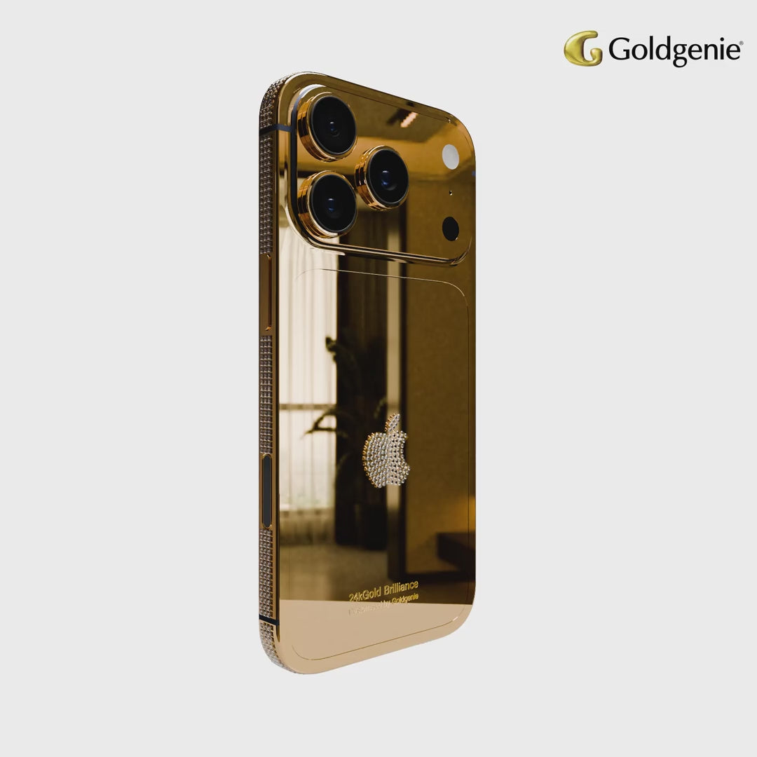 24k Gold iPhone 17 Pro Max Diamond Bezel Logo